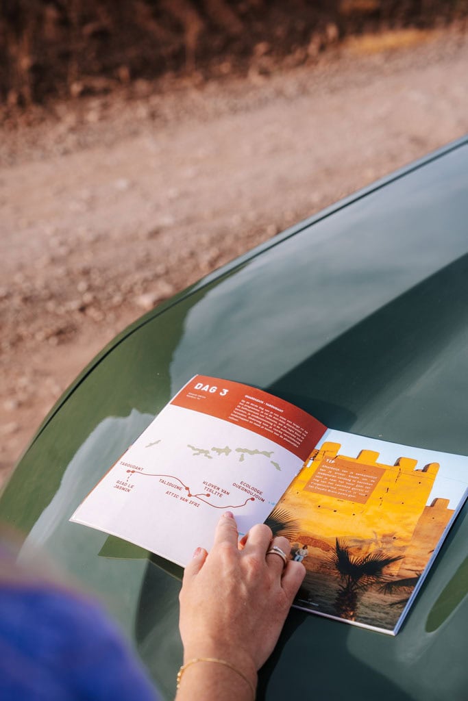 Veel mensen die aan Marokko denken, komen al snel uit bij een stedentrip Marrakech. Maar tijdens de 7-daagse roadtrip met Morocco Nomads ontdek je pas hoe divers het land รฉcht is. Voor deze reis hoefden we zelf bijna niets te regelen. Voor vertrek krijg je namelijk toegang tot een handige app waarin de route staat, praktische info en wat je per dag kunt verwachten. Eenmaal in Marokko ontvang je ook een roadbook en dat is je leidraad voor de hele trip. Je ziet per dag welke stops je onderweg kunt maken en waar je het beste nog even iets te eten haalt omdat je daarna een rustig stuk tegemoet gaat.