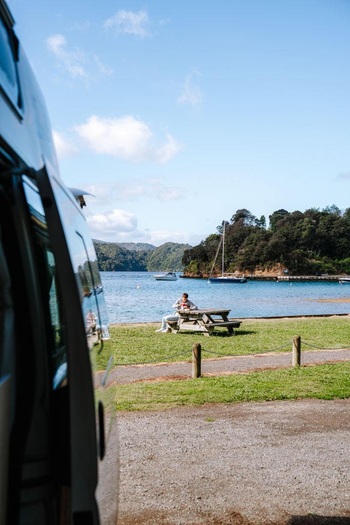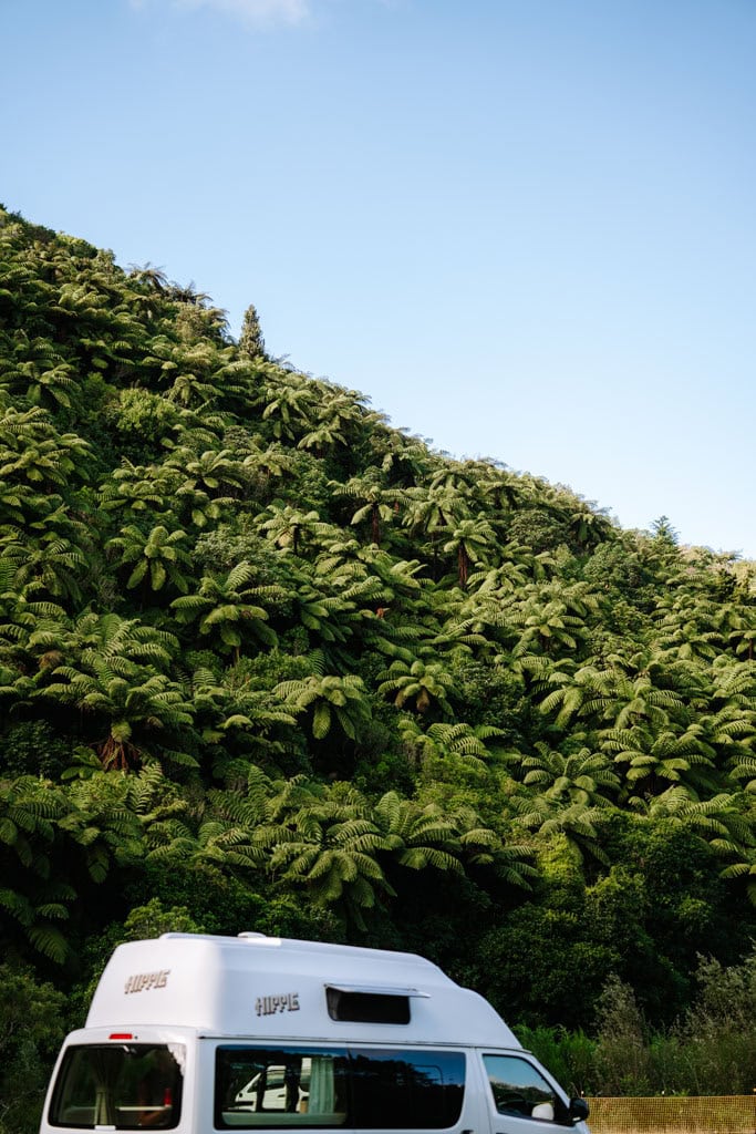 De meeste reizigers starten de route door Nieuw-Zeeland in Auckland. Na zoโn lange vlucht is het slim om eerst een nacht bij te komen voordat je je camper ophaalt. De meeste verhuurders zitten bij het vliegveld, dus een motel in die buurt is ideaal. Wij sliepen bij BKโs Pioneer Motel en dat was prima, vooral omdat ze een gratis shuttleservice hebben. Start je dag met een goed ontbijt bij Wild Wheat en neem gelijk een zuurdesem brood mee voor je eerste lunch onderweg. Haal je camper op en rijd direct de stad uit richting Coromandel, waar het echte avontuur begint. Heb je iets meer tijd voor Auckland? Ga dan naar het uitzichtpunt op Mount Eden of rijd naar de kust voor de Omanawanui Track.