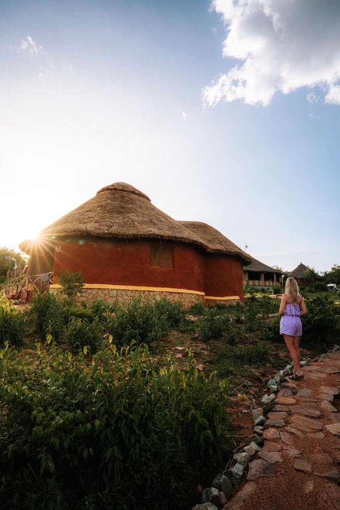 Je rondreis door Tanzania start bij aankomst op luchthaven Kilimanjaro. Het beste haal je hier direct een simkaart en wat cash geld. Daarna is het nog ongeveer een uur rijden naar je hotel in Arusha. De stad zelf is geen bestemming waar echt veel te zien is. Het is vooral een praktische uitvalsbasis waar je een briefing krijgt over de reis en je auto ontvangt, inclusief uitgebreide uitleg over hoe een 4×4 werkt en wat je moet doen bij een lekke band. Installeer de app Bolt om ’s avonds een tuktuk te regelen naar een restaurant. Een leuke plek waar je nog één keer westers kunt eten, is George’s Tavern. Maak voordat je aan je roadtrip begint nog een stop bij Sable Square Shopping Village voor grote kannen water en gooi je tank vol. Zodra je zelf achter het stuur stapt en de stad uitrijdt richting Tarangire, begint het gevoel van vrijheid meteen.