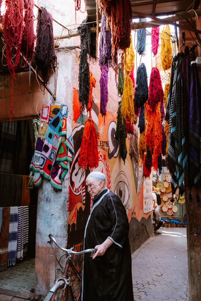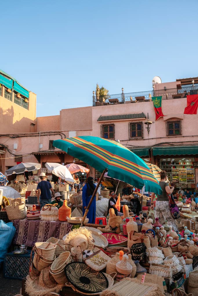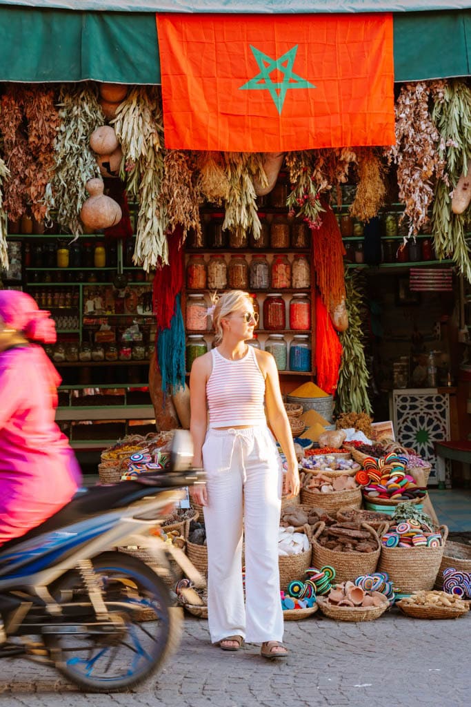 Als vrouw is het wel nodig om je kleding een beetje aan te passen aan de lokale cultuur. Hoewel Marrakech inmiddels gewend is aan toeristen, wordt het gewaardeerd als je je respectvol kleedt. Je hoeft echt niet volledig bedekt te gaan, maar kies liever voor een lange broek of jurk en een top met korte mouwen in plaats van spaghettibandjes. Dat voelt niet alleen passend, maar ook prettiger wanneer je door de medina loopt. Zelf draag ik vaak deze betaalbare luchtige broeken van linnen. Die zitten heerlijk en zijn zelfs in warme temperaturen goed te doen.