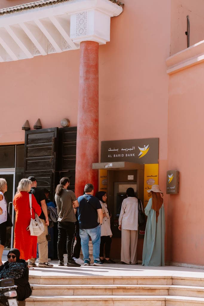 Waar je in de meeste grote wereldsteden met pinpas kan afrekenen, is dat in Marrakech niet het geval. Alleen bij de luxere restaurants kan je pinnen, maar verder moet je รกlles met cash betalen. Nou is dat niet per se een probleem, alleen is de lokale ATM fee โฌ6,50 per opname. Daarom raden wij het aan om cash geld mee te nemen vanuit Nederland en die te wisselen bij de balie in de hal waar je je bagage ophaalt. In de stad zelf is er รฉรฉn pinautomaat waar je geld kunt opnemen zonder extra kosten. Dit is de locatie van de pinautomaat zonder extra kosten. Dit is zoiets wat je vooraf moet weten als je een stedentrip naar Marrakech maakt, want anders geef je onnodig veel geld uit!