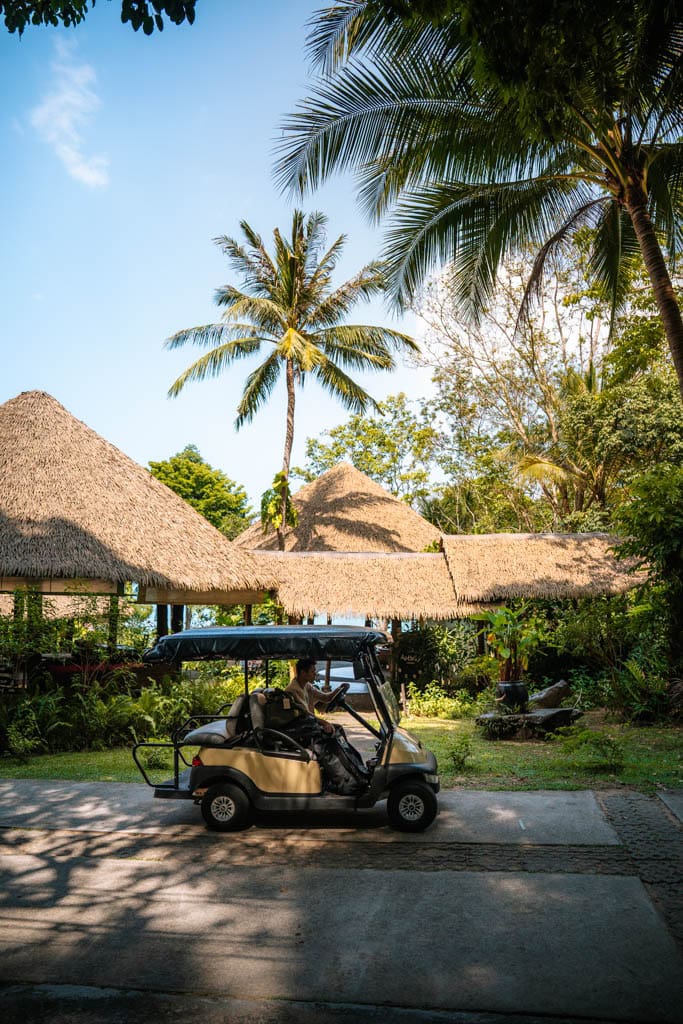 Als je het ons vraagt is de beste tip voor Koh Yao Yai om hier een mooi resort te boeken en gewoon een paar dagen op en top vakantie te vieren. Wij verbleven bij Koh Yao Yai Village en dit is echt een plek waar je voorlopig niet meer weg wil. Bij aankomst word je met een golfkarretje naar je bungalow gebracht, wat meteen een fijn begin is van je verblijf. Het resort ligt volledig verscholen in het groen waardoor het ondanks de grootte heel rustig aanvoelt. Overal hoor je vogels en in de ochtend zie je zelfs neushoornvogels overvliegen.