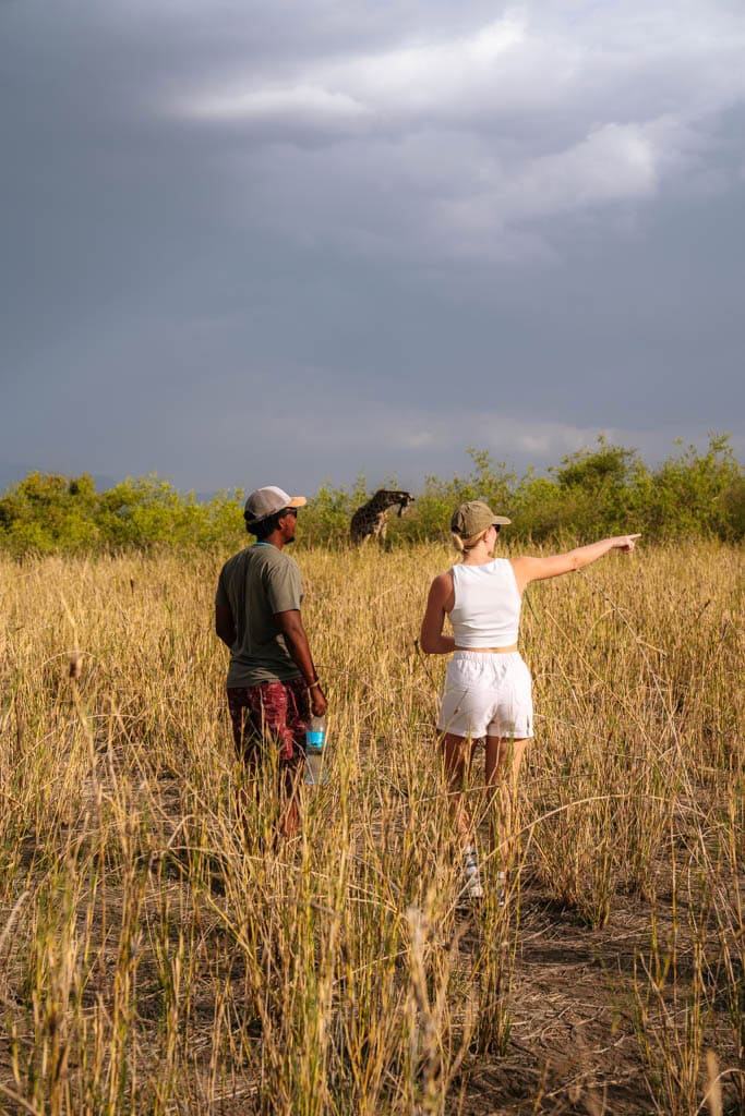 Voor een safari in Tanzania is comfortabele en praktische kleding belangrijk. Overdag kan het warm zijn, terwijl het ’s ochtends vroeg en ’s avonds flink kan afkoelen. Kies voor lichte, ademende kleding in neutrale kleuren zoals beige, groen of bruin. Felle kleuren en drukke prints kun je beter vermijden en ook zwart of donkerblauw zijn minder slim omdat deze kleuren meer insecten aantrekken. Een lange broek en een luchtige blouse met lange mouwen beschermen tegen de zon en muggen. Ik draag zelf bijna altijd dunne linnen broeken tijdens safari’s. Die zitten luchtig, geven voldoende bescherming en zijn ook prettig wanneer het wat afkoelt. Dichte schoenen, een pet of hoed en een zonnebril maken je outfit compleet. Speciale safarikleding aanschaffen is niet nodig, grote kans dat je al iets passends in je kast hebt liggen.