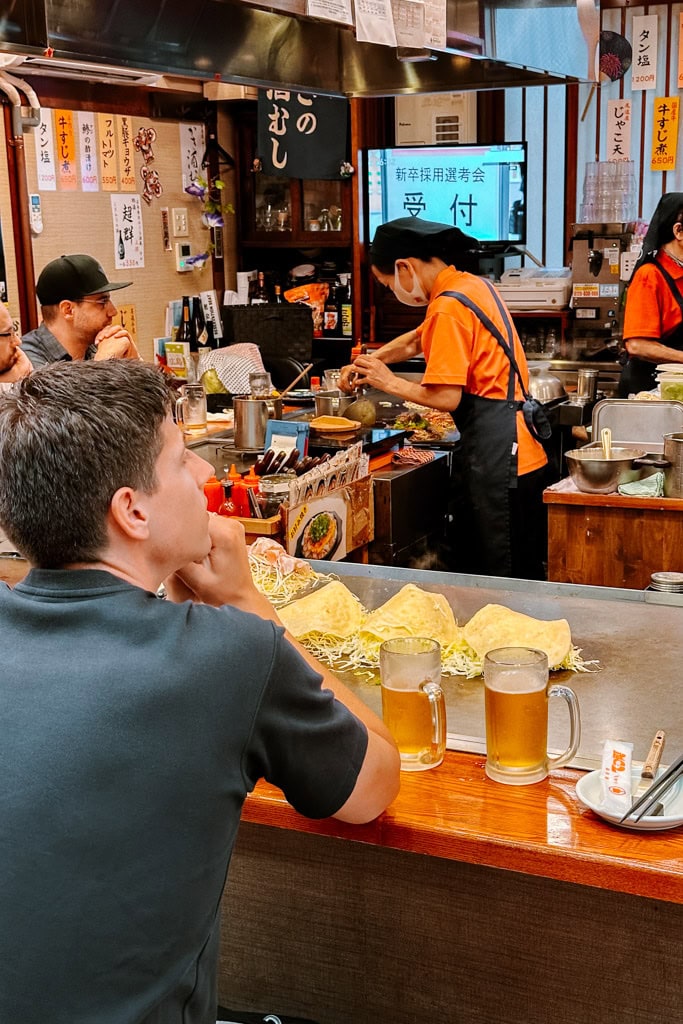 Een leuke tip voor Hiroshima is om okonomiyaki te eten. Het gerecht ontstond na de atoombom, toen er weinig ingrediënten beschikbaar waren en mensen met simpele producten toch een voedzame maaltijd wilden maken. Het is een soort pannenkoek die bestaat uit kool, ei en noedels en met een heerlijke saus erover. Inmiddels is het uitgegroeid tot een iconische Hiroshima-specialiteit. De beste plek om dit te proeven is Okonomimura in downtown Hiroshima. Een gebouw met meerdere verdiepingen vol mini-restaurantjes waar okonomiyaki op een hete bakplaat voor je neus wordt bereid. Je kiest zelf je toppings zoals noedels, kaas of bacon en ziet hoe jouw stapel langzaam verandert in een goudbruine, hartige pannenkoek. Simpel, gezellig en vooral heel lekker!