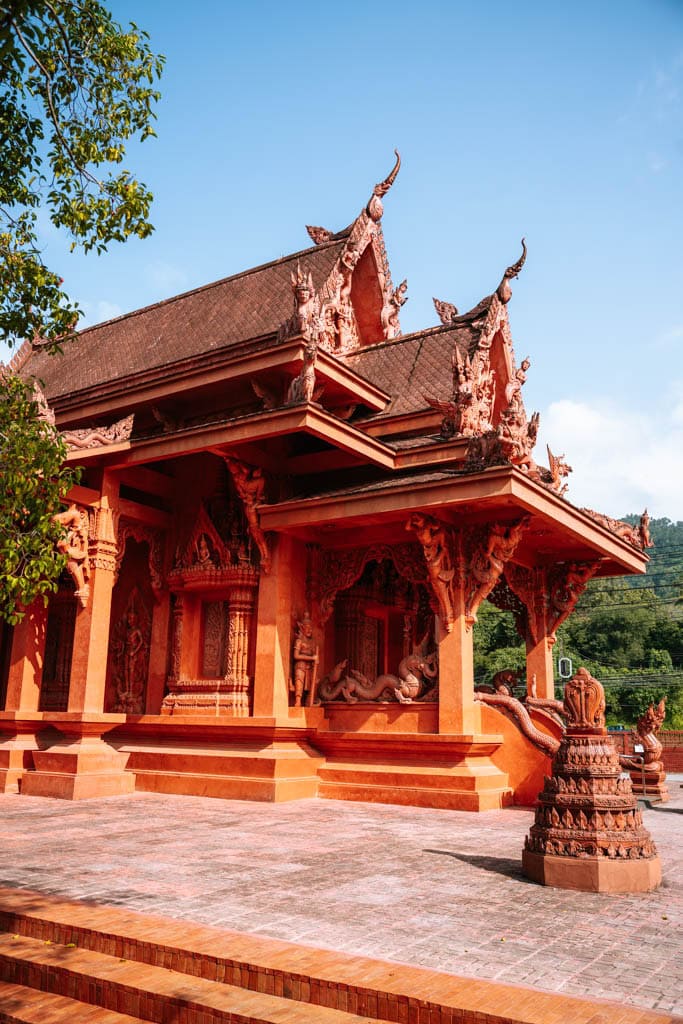 Als je Overlap Stone 2 bezoekt kom je op de terugweg langs de opvallende rode tempel Wat Ratchathammaram. Deze tempel staat ook wel bekend als de Red Temple en is een korte stop die je makkelijk kunt meepakken. De tempel valt meteen op door de dieprode kleur en de vele gedetailleerde versieringen. Het terrein is vrij klein dus je hoeft hier niet lang te blijven. In tien tot vijftien minuten heb je de tempel rustig bekeken en een paar mooie foto’s gemaakt. Zorg net als bij andere tempels in Thailand dat je schouders en knieën bedekt wanneer je de tempel bezoekt.