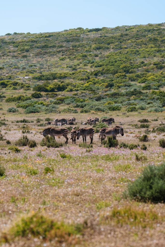 In augustus en september verandert de Postberg-sectie van West Coast National Park in een zee van kleur. Duizenden wilde bloemen bloeien hier tegelijk en toveren de glooiende heuvels om tot een levend schilderij vol paars, geel, oranje en wit. Dit is dé plek waarvoor veel Zuid-Afrikanen speciaal naar het park komen en wij kunnen alleen maar als tip meegeven om dat ook te doen. Je rijdt met de auto en kijkt uit over de bloemenvelden met op de achtergrond de felblauwe Langebaan Lagoon. Juist doordat Postberg minder bebost is, heb je hier ook veel kans om wildlife te spotten. Zebra’s, elanden, bontebokken en struisvogels grazen vaak gewoon tussen de bloemen, wat het plaatje compleet maakt. Goed om te weten is dat de Postberg-sectie alleen geopend is tijdens het bloemenseizoen, meestal van begin augustus tot eind september. Buiten deze periode is dit deel van het park gesloten.
