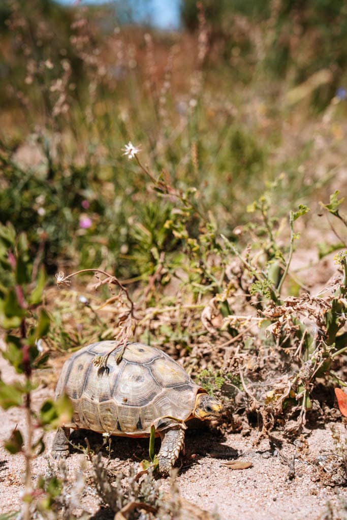 Hoewel je West Coast National Park niet per se bezoekt voor wildlife, is het spotten van dieren hier een hele leuke bonus. Bij de ingang krijg je een plattegrond waarop staat welke dieren in het park leven, dus houd onderweg je ogen goed open. Het ene moment zie je zebra’s rustig grazen en even later steekt er ineens een struisvogel de weg over. Daarnaast leven er verschillende antilopesoorten zoals gemsbokken, bontebokken en elanden. Wij hadden zelfs het geluk dat we een zeldzame caracal de struiken in zagen verdwijnen. Ook schildpadden en slangen steken regelmatig de weg over. Het voelt daardoor als een soort mini-safari.